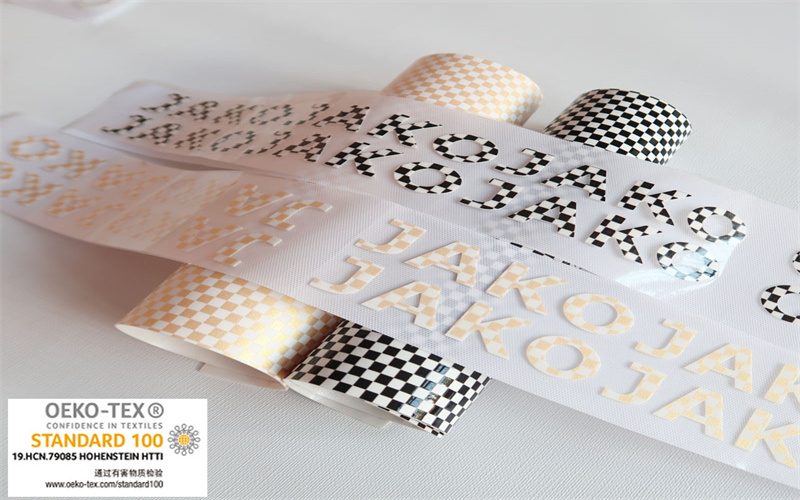 欧悦刻字膜、转印膜、烫画应用于服装标牌、手袋标牌、旅行袋标牌、箱包标牌、服饰图案、运动用品、鞋带装饰防滑、袜子防滑等各个行业。