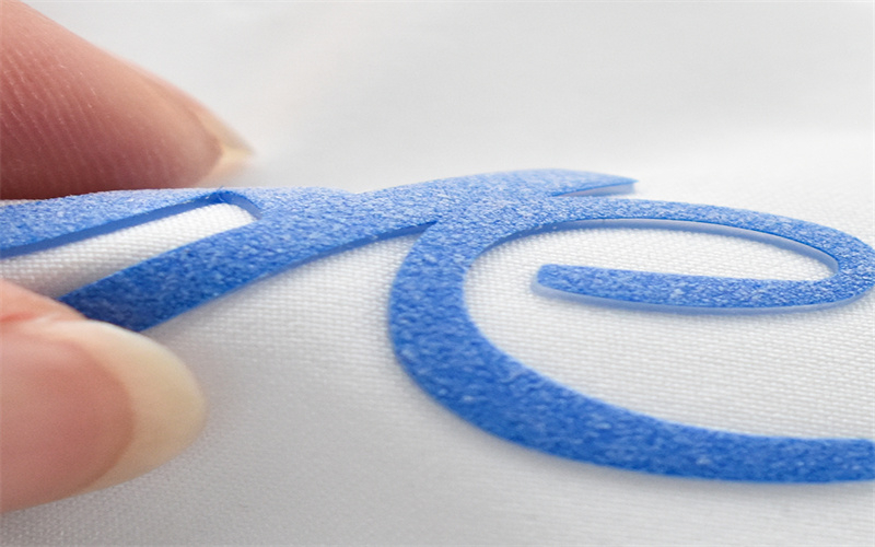 属于硅胶材质,手感柔软,耐高温耐水洗,厚度为0.7-0.8mm可选,40*50cm/张的尺寸,可加工成各种形状的logo商标烫标。