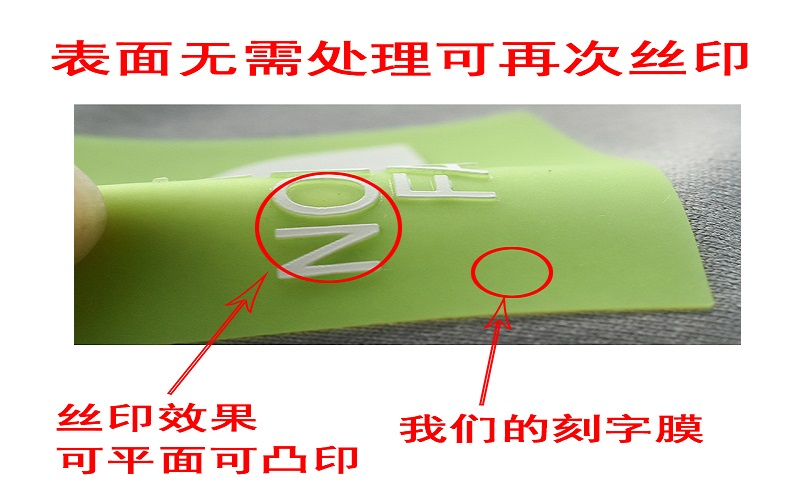 而且想要厚度又想要有其他效果的时候,硅胶刻字膜可以表面不用二次处理,可以直接进行丝印,直接省了很多麻烦,这就是刻字膜的很大优势,但二次印刷的浆料只能印硅胶。